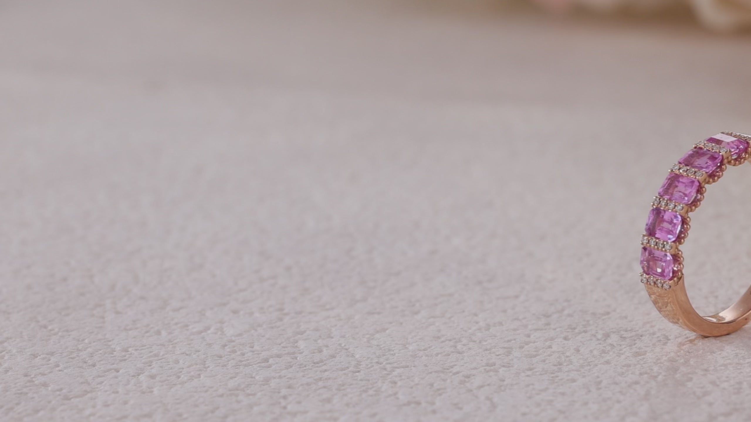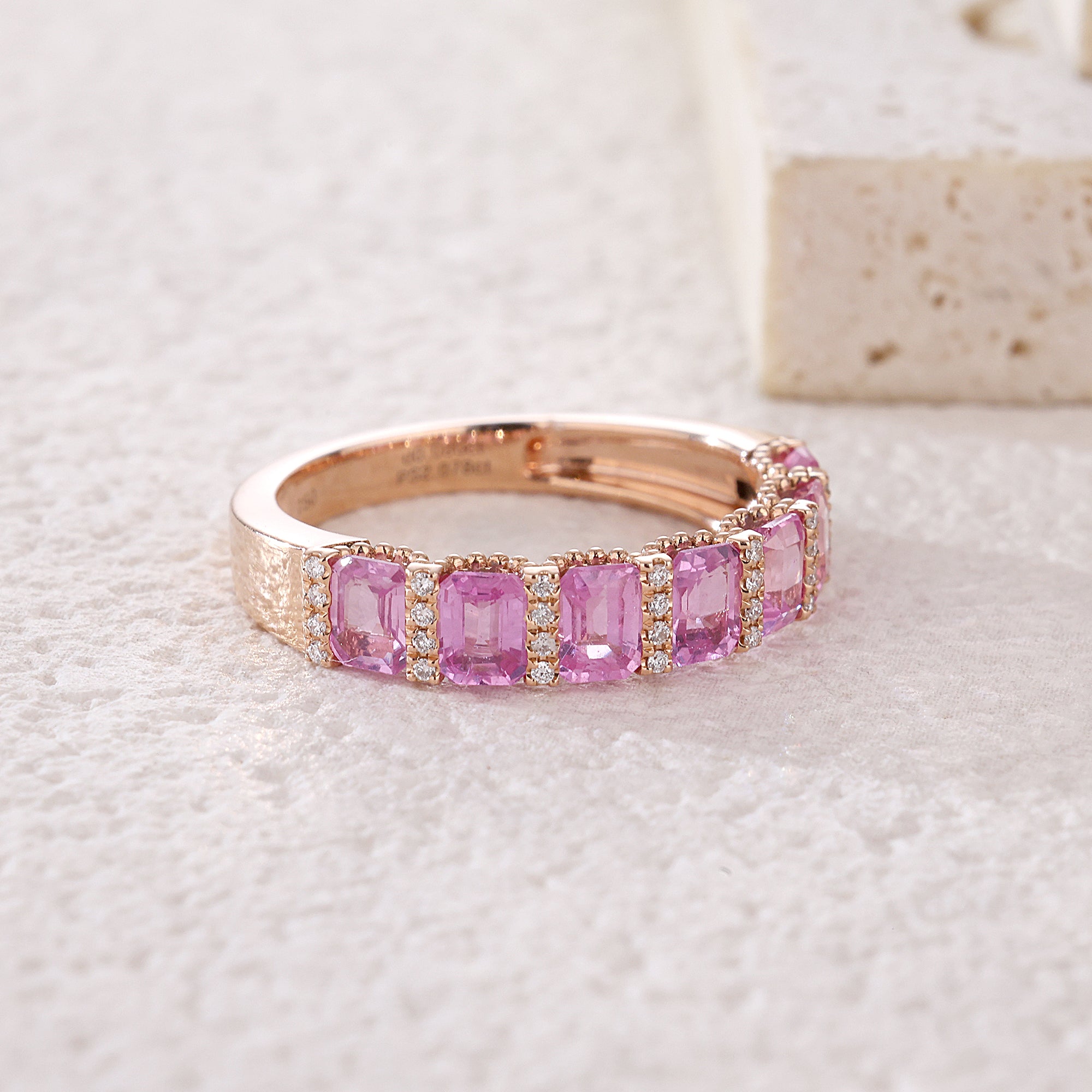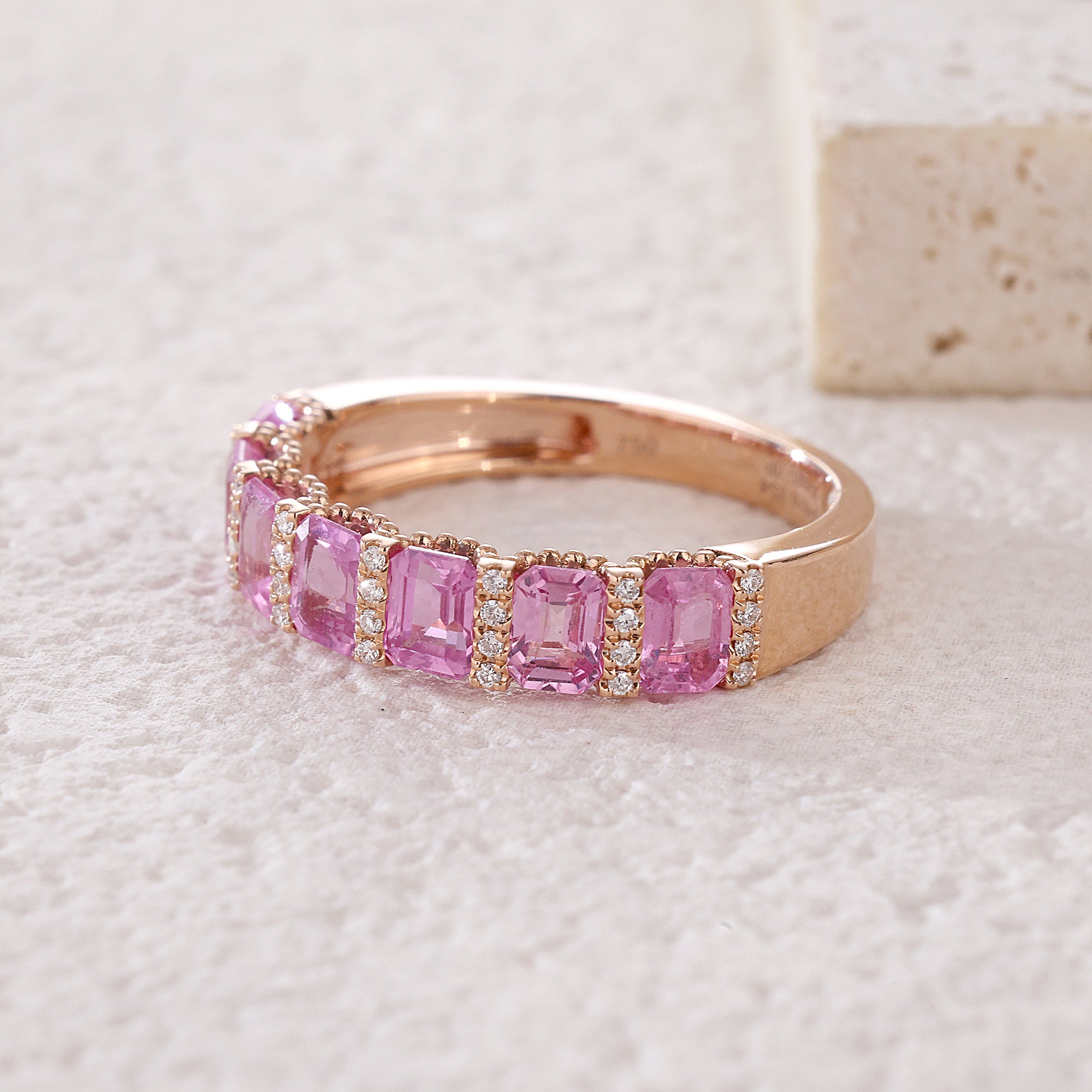 『小八角組合』18K鑲天然半渾身彩虹/粉紅藍寶石鑽石戒指